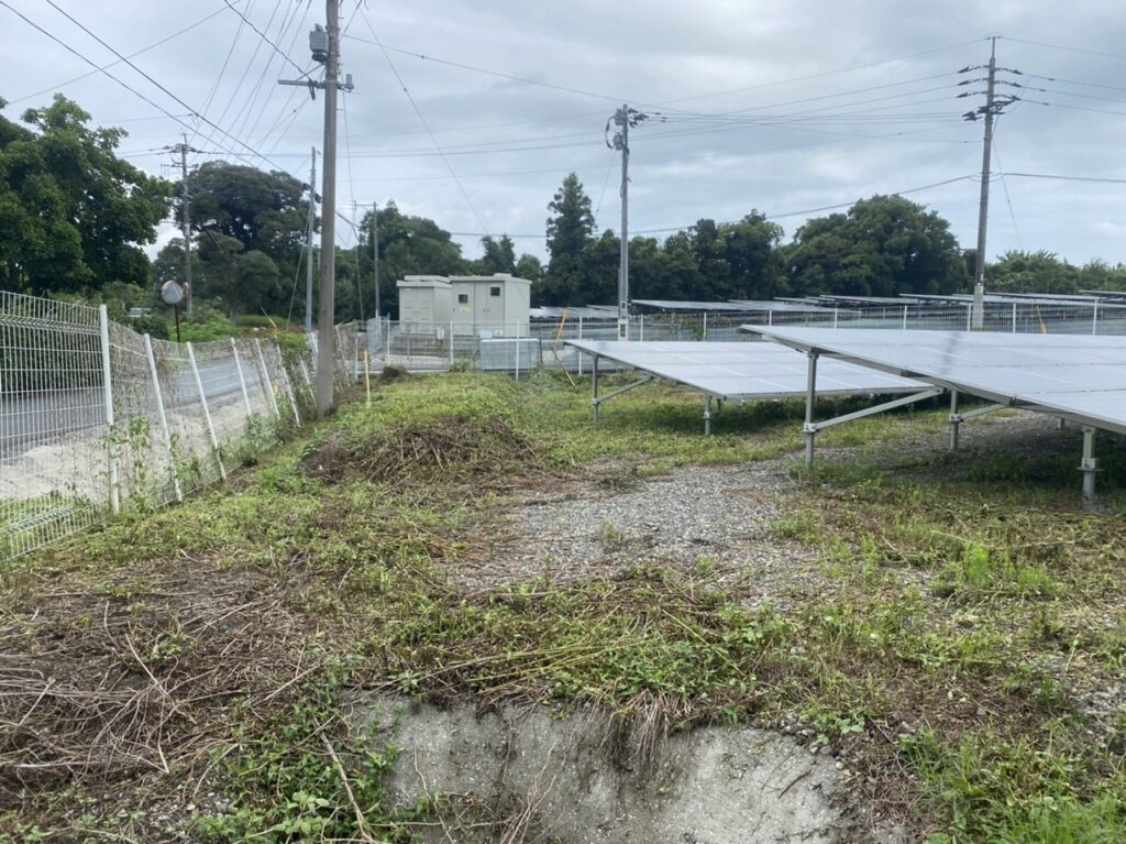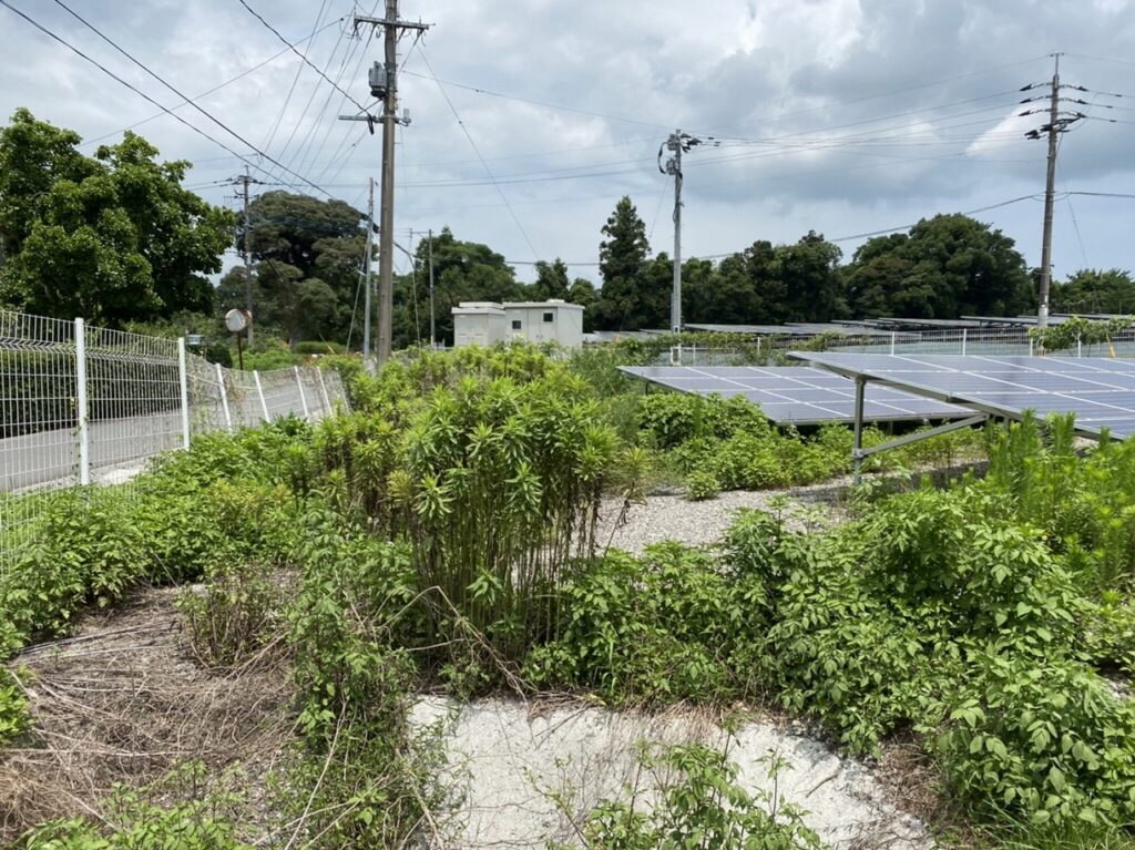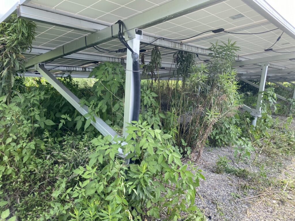 太陽光発電所敷地内草刈り 2023.01.23 草刈り・除草 広島県 太陽光パネル周辺は日当たりが良いのでよく茂ります パネルの裏側にもこんなに。放置すれば施設の機能を阻害してしまいますね 施設に干渉しないよう手刈りで丁寧に 太陽光発電施設に精通しているサコダ.WORKSならではの安心の手刈り 綺麗になりました 放置すれば架台やパネルを痛める恐れもあるので、除草作業は大切なメンテナンスの1つです URL Copied!